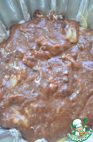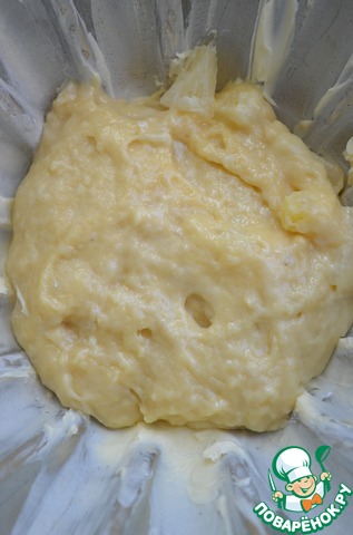 Подошедшее тесто обомните, добавьте ананас. Отщипните кусочек (объемом в 4 ст. ложки) и перемешайте с шоколадной пастой и какао.
