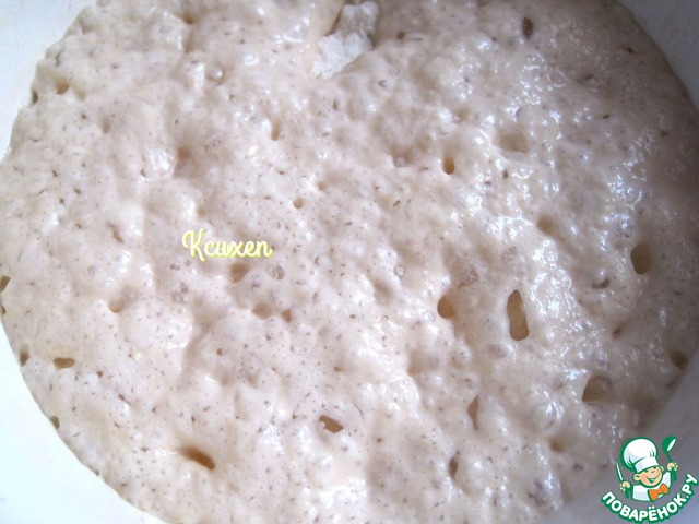 Замесим вязкое, липкое тесто. Накроем и оставим на 1 час в тёплом месте.