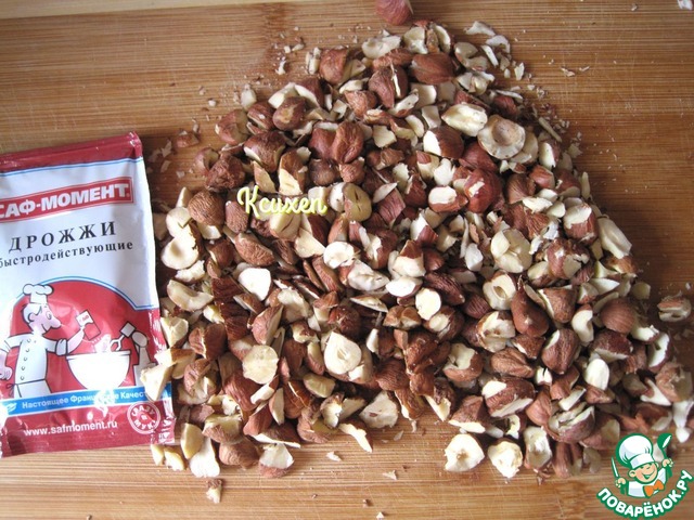 В большой посуде смешаем муку, рубленный фундук, сахар, ванильный сахар, соль и цедру апельсина.