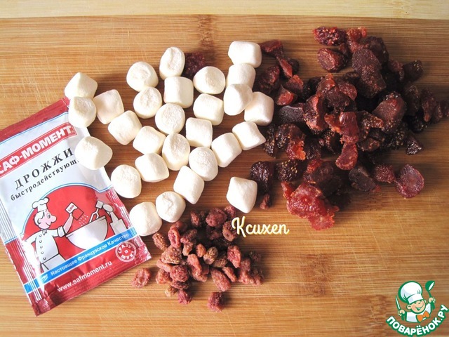 | ... А ещё с вяленой клубникой, с земляникой и с белоснежной шапочкой из сахарной помадки. Очень сладко, очень сдобно и очень вкусно! |