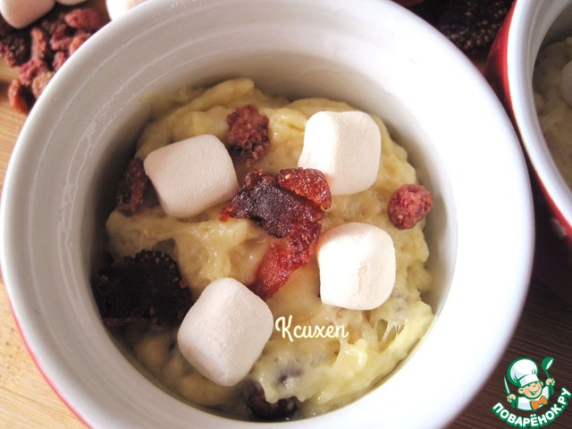 Маршмэллоу местами полностью растворилось в тесте, оставив дырочки.