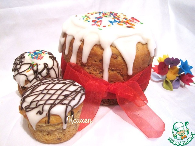 Поэтому добавлять лишние шаги в рецепте. И так, полностью остывшие куличи покрываем помадкой и украшаем по вкусу шоколадом и кондитерской посыпкой.