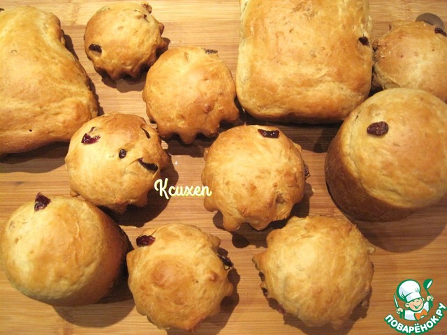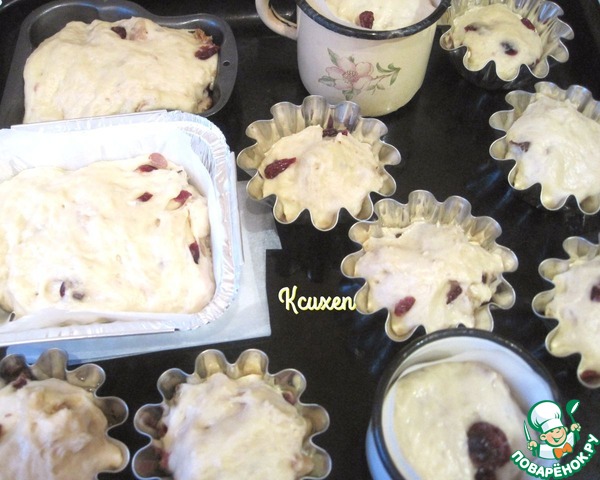 Формочки смазываем маслом или выстилаем бумагой для выпечки. Духовку включаем на разогрев t 180 градусов. Готовое тесто обминаем и раскладываем по формам, заполняя 1/2 объёма форм. Накроем и оставим в тёплом месте для окончательной расстойки ( примерно на 20-ть минут).