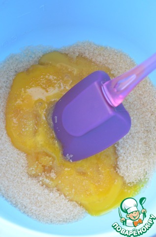 В просеянную муку добавить заварной крем и пудинг, все перемешать.