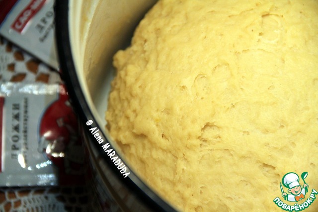 Тщательно месим тесто, укутываем полотенцем и ставим для второго подъема в теплое место.