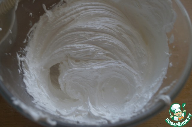 Приготовим меренгу. Для этого в чаше смешаем яичные белки и сахар. Поставим на водяную баню и будем постоянно взбивать микером до пышной упругой массы, которая должна достичь температуры 50 градусов. После этого снимем с водяной бани и продолжим взбивать еще 7-10 минут.