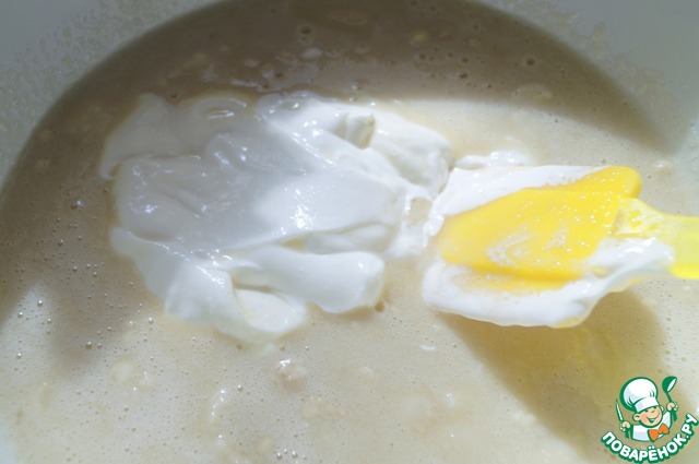Желтки добавить к опаре. Сюда же подмешать сметану и соль.