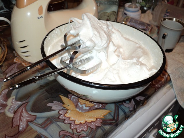 Пока пекутся наши куличики, делаем глазурь, я предпочитаю гоголь-моголь. Достаем из холодильника 4 яичных белка, в крупной миске начинаем взбивать миксером со щепоткой соли до густой белой пены. Постепенно добалять сахар, не прерывая процесс взбивания. Получаются густые белые пики, практически стоячие. Сахар можно заменить пудрой, хотя он и так прекрасно растаял.