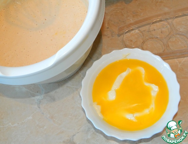 Подошедшее тесто обминаем и раскладываем в смазанные формочки.