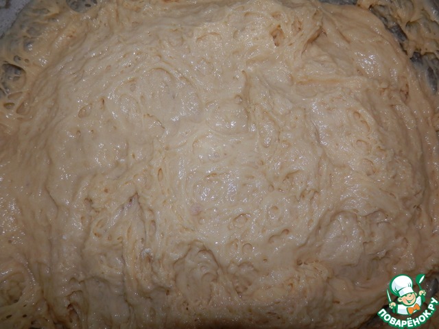 Добавить в опару желтки перетертые с сахаром, ванилью и солью, размягченное сливочное масло и взбитые в пену белки. Высыпать оставшуюся муку и замесить тесто. Тесто должно подняться в 2 раза.