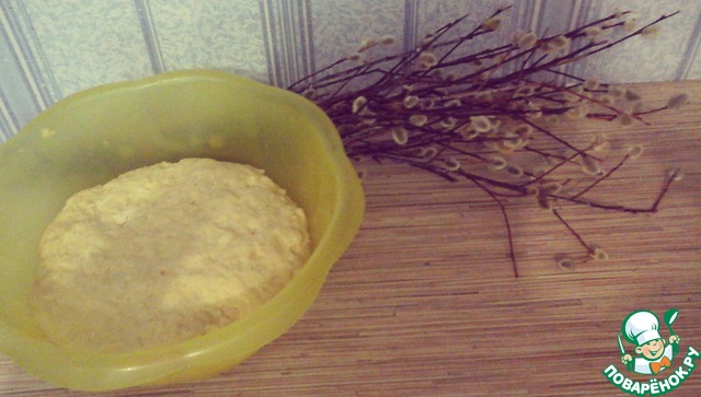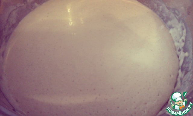 К молоку добавить 1 стакан муки, размешать, чтобы не было комков. Накрыть опару полотенцем и поставить ее в теплое место на 30-40 минут для увеличения в 2 раза.