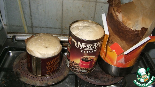 Я использую для этого старые банки из-под кофе, выложив их пекарской бумагой. В низкуюбанку - 250г теста, в высокую - 350г.
