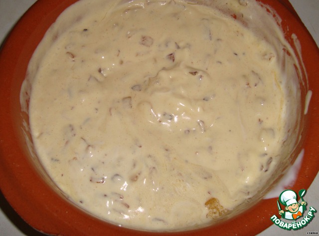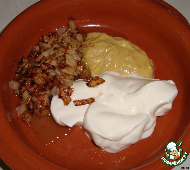 Горчица + сметана +обжаренный лук смешаем