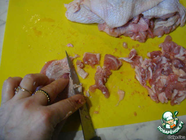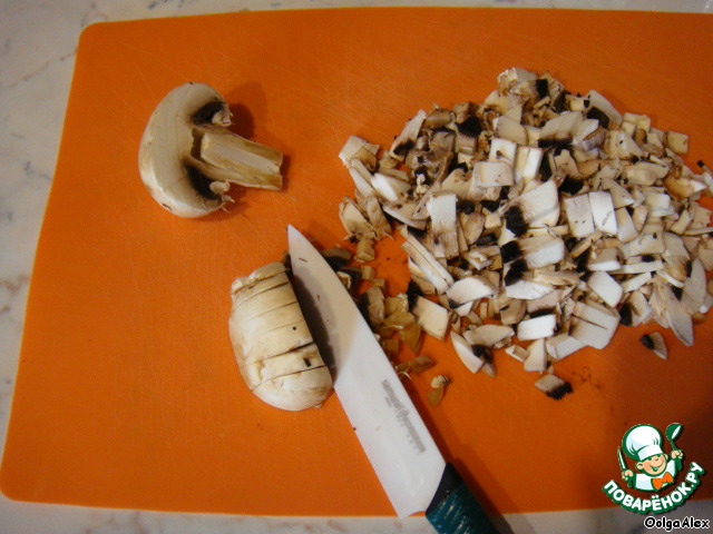 Шампиньоны нарезаем небольшими кубиками. У меня грибочки чуть «перезревшие», поэтому не очень красивые.
