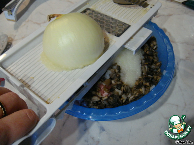 Измельчаем лук, можно его просто порезать кубиками, я тру на тёрке.