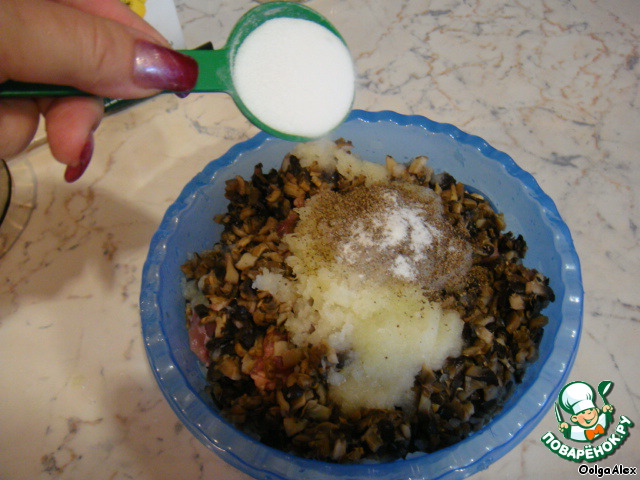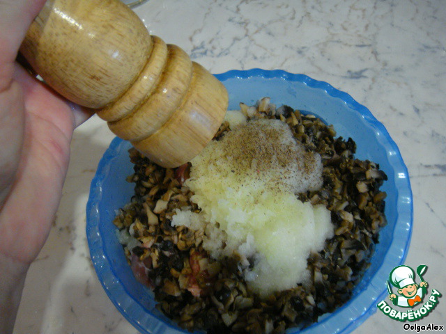 …солим по вкусу и хорошо вымешиваем нашу начинку.