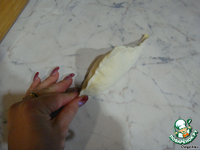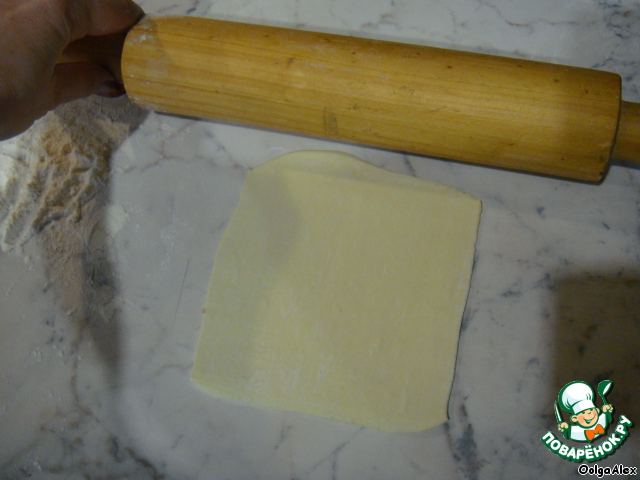Раскатываем тесто, что бы из «прямоугольника» получился «квадрат», толщина теста примерно 2 мм.