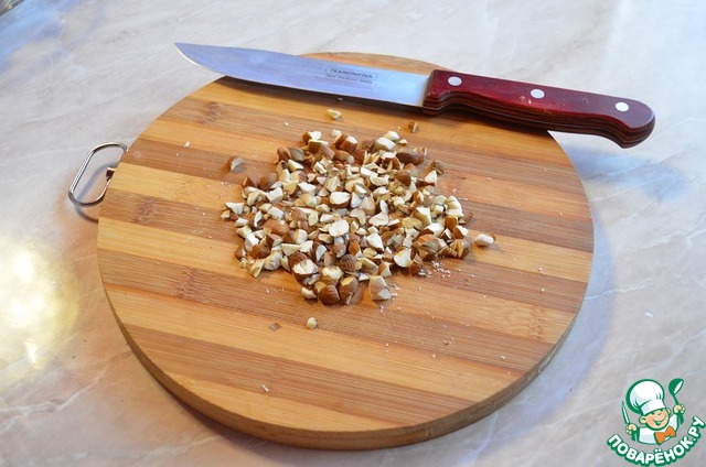 Порубить миндаль. Сливы и мидаль перемешать в миске.