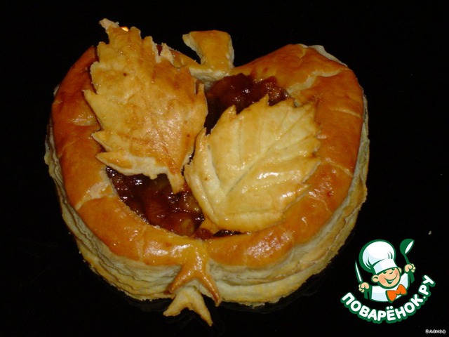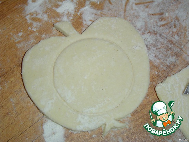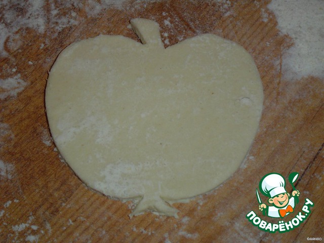 Раскатываем слоеное тесто и с помощью шаблона вырезаем листочки.