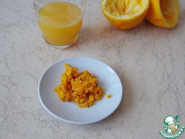 Пока заготовки охлаждаются и разогревается печка, снимите цедру с апельсина и отожмите сок.