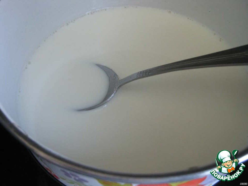 Закипевшее молоко осторожно вливаем в желтки, сначала по каплям, потом струйкой, чтобы они сразу не свернулись.