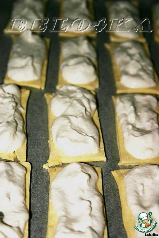На кусочки теста выложить безе.