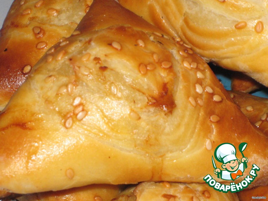 | Леночка (Чипполинка) еще утром раздразнила меня чудесными слойками с oбалденной начинкой, что тут же захотелось. Слоеного теста к сожалению не оказалось, пришлось сделать самой. Тесто напоминает Фило или самсу, а может что-то среднее, но очень вкусненькие. Тонкое, хрустящее тесто очень рассыпчатое и тает во рту. |