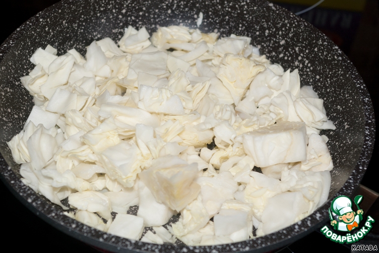 На совсем малом количестве масла обжарьте капусту до золота, в конце добавьте немного лука и соли.