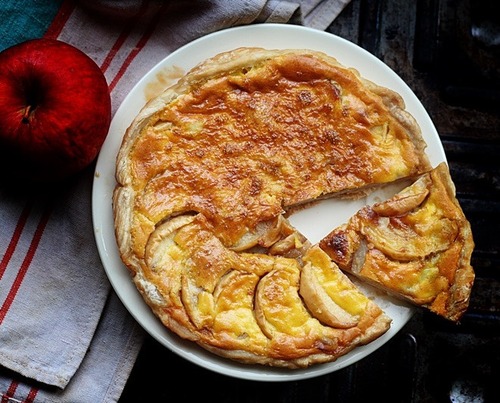 Выложить яблоки с подливкой на тесто.