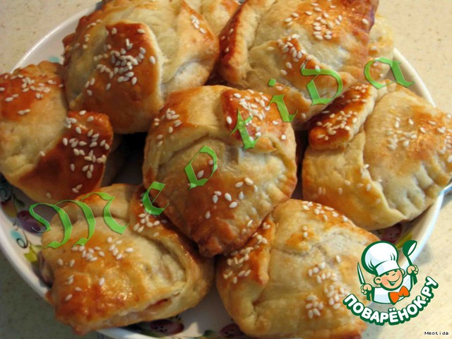 | За окнами осень, вот и получились такие вот листики с кунжутной посыпкой из слоеного теста, с очень вкусной начинкой из жаренных шампиньончиков с сыром и кусочками помидорки.. Очень быстро.. просто.. сочно.. и невероятно вкусно когда гости на пороге.. когда просто хочется чего-нибудь вкусненького и побыстрее |