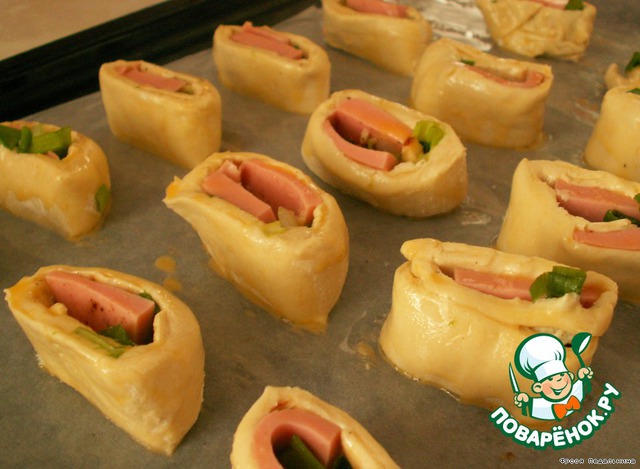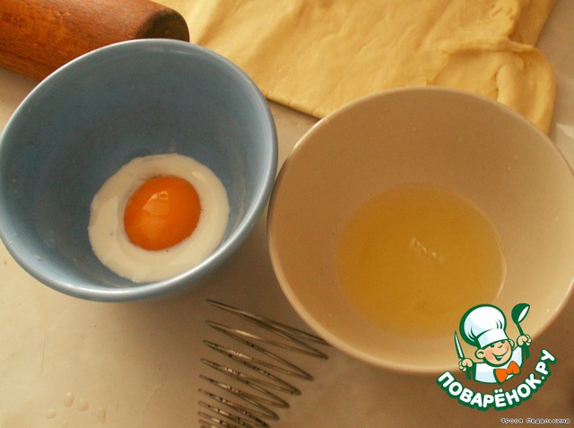 Выложить на смазанный маслом противень. Улитки помазать взбитым желтком.