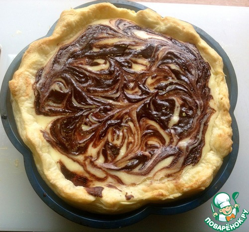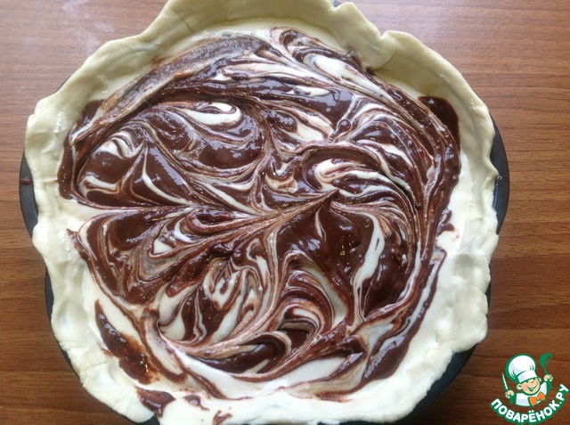 Ножом делаем произвольные разводы. Отправляем пирог в духовку на 25-30 мин при 180 град.