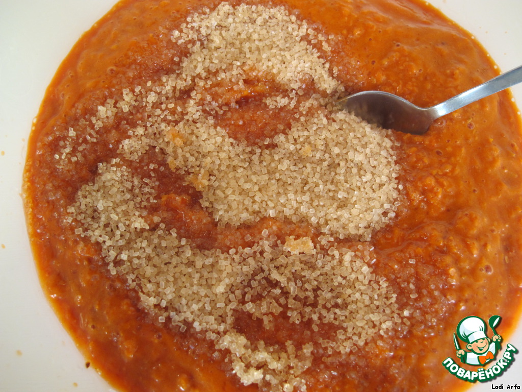 Добавила сахар к рябиновому пюре.