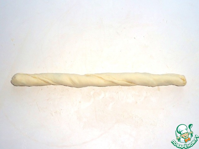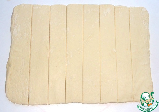 Затем каждую полоску из теста ещё раз немного раскатать, но только в ширину.