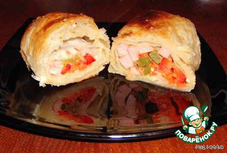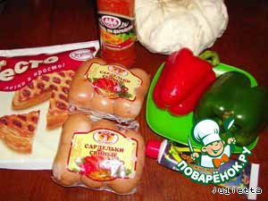 Голубцы из сарделек и овощей в слоeном тесте