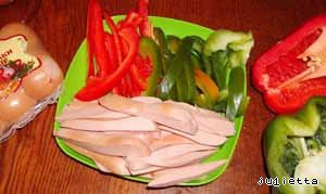 также нарезать соломкой паприку.