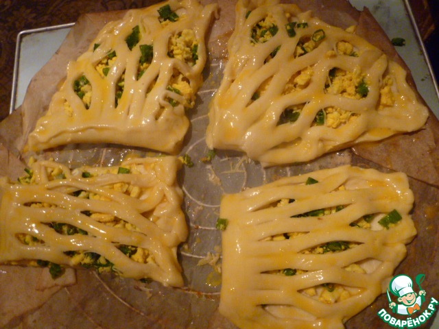 Слойки с варенным яйцом и зеленым луком