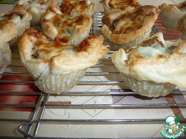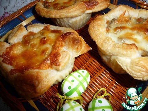 | Я сегодня решила сделать простой и очень вкусный рецепт, называется: "Корзинки из слоеного теста с рисом и куриной печенью, сыром Моцареллой". Вкусно, просто, быстро. |