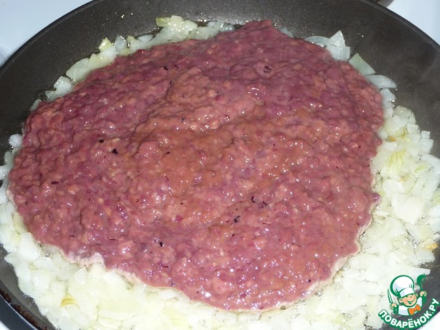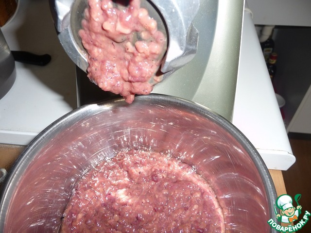 Готовим начинку для корзиночек. Печень почистить, промыть, перекрутить через мясорубку.