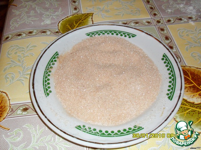Смешать 1/2 стакана сахара, ванилин и корицу. Это будет посыпка.