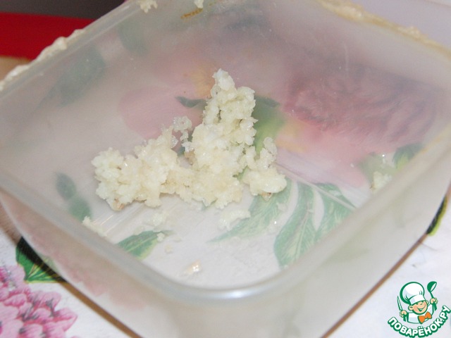 Измельчить чеснок через пресс.