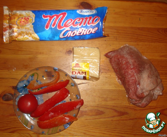 Пирожки из слоеного теста с фаршем, помидорами и сыром