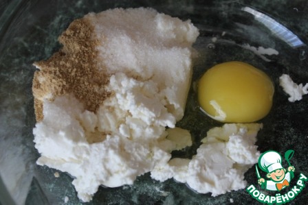 Для начинки смешиваем творог, яйцо, ванилин, имбирь и сахар (для сладкоежек сахара можно увеличить), перемешиваем.
