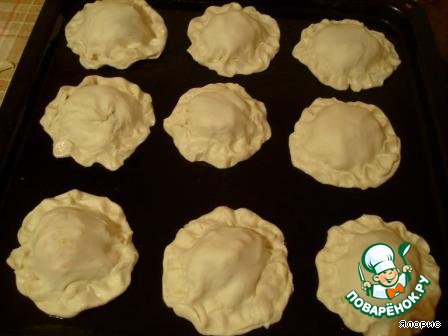 Раскладываем начинку и накрываем ее вторыми кружками.Защипываем края - получаются такие панцири.