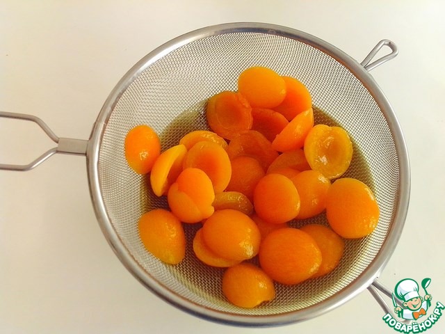 Вариант №1. Абрикосы достать из банки, переложить в дуршлаг, чтобы стек сок и фрукты немного подсохли.