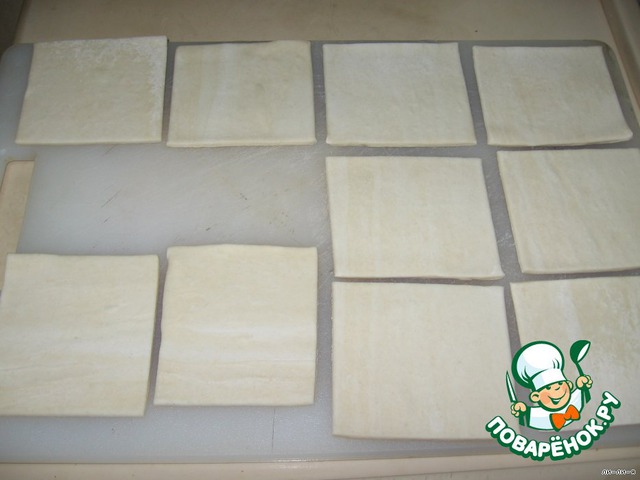 Тесто разморозить, раскатать в одном направлении до 3 мм.
