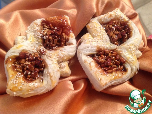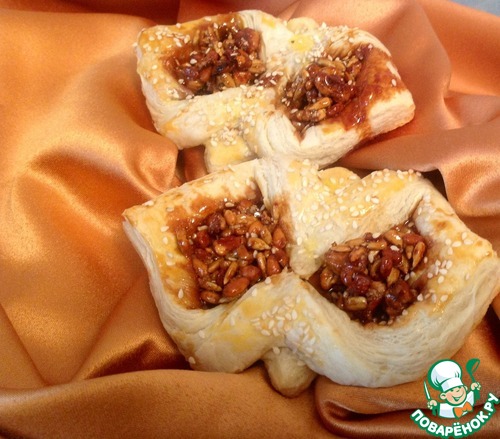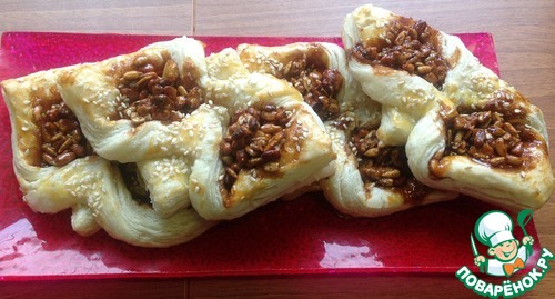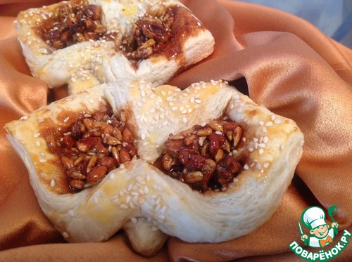 | Вкусные и бесподобные слоечки с карамелизованными орехами. Легко и быстро готовятся. |