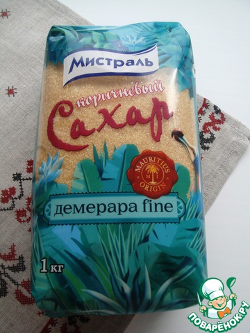 Потом возьмем коричневый сахар - тут идеально подойдет Демерара от Мистраль - ароматный, карамельный сахар, как кусочки янтаря или крупинки золота