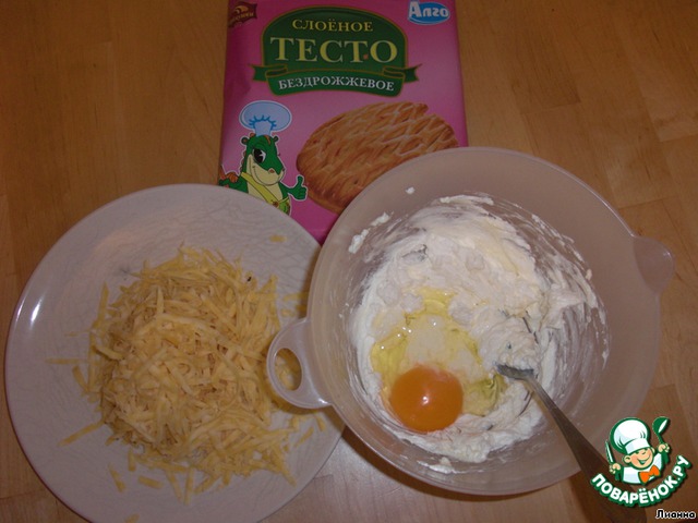 | Чудесные слойки с оригинальной начинкой. Начинка включает смесь сыра и творога, получается очень нежно и вкусно. |