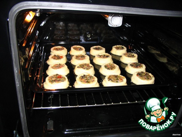 За это время выложенное из морозилки тесто должно немного оттаять, а печь (у меня газовая) хорошо прогреться.